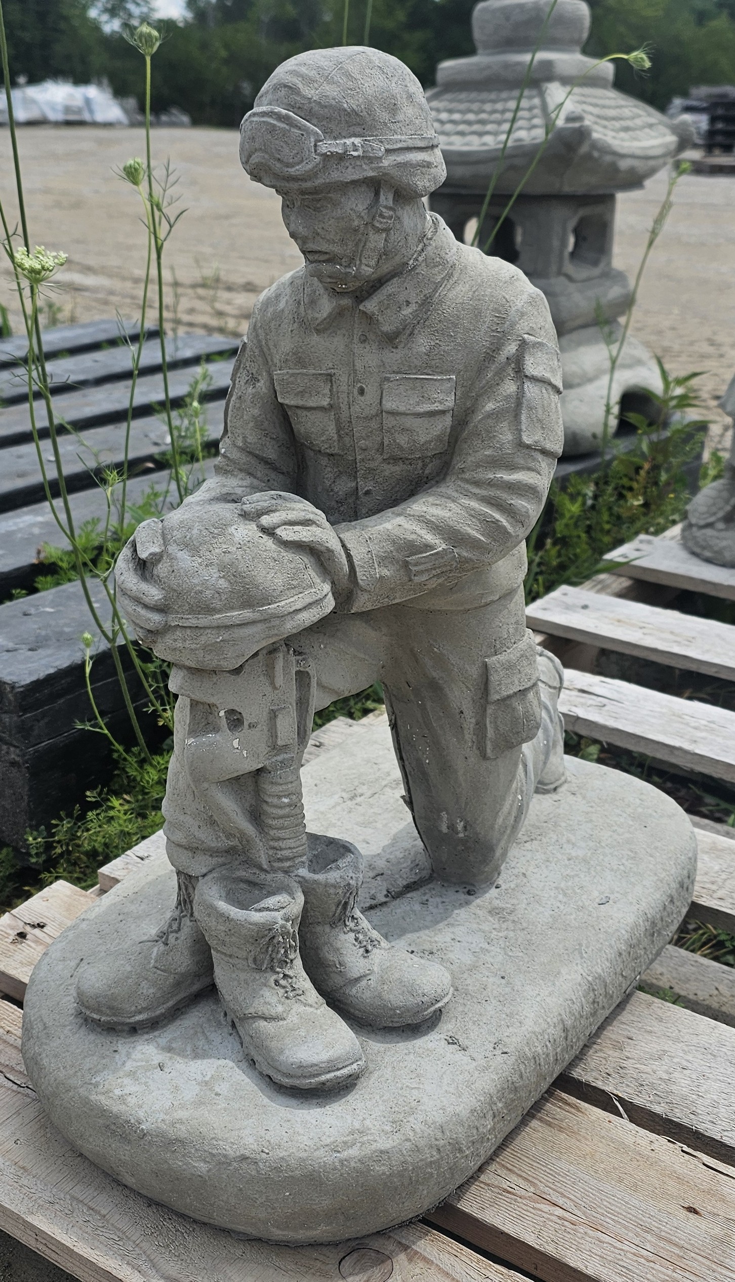 SOLDIER KNEELING BY BATTLE CROSS NEW 2025